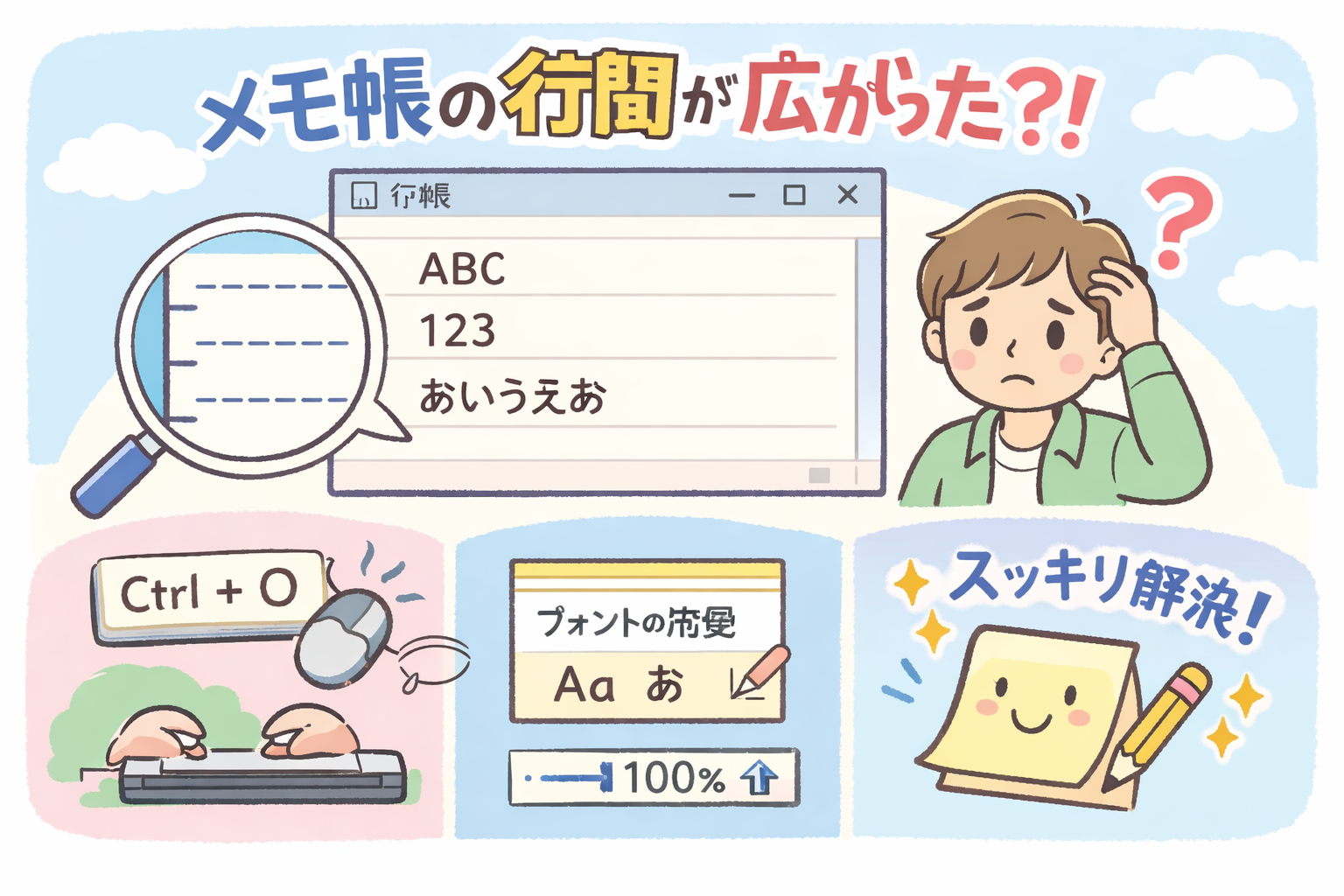 この記事でわかること:メモ帳の行間が広がる原因と設定変更方法
