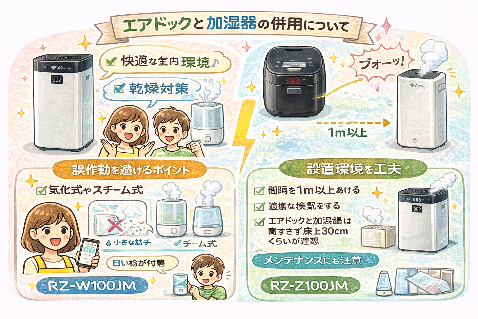 しかし、正しく理解すれば、エアドックと加湿器は問題なく併用可能です。